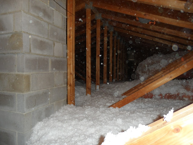 The workers said this was a really big house and they used 6 cans of foam sealant when they normally use 1 or 2. They worked until about 8pm and had to close up before finishing. They will need to come back to "pooky" seal up the rooftop AC plenums and perform their final pressure tests to verify the sealing improvement to the house and ducts.
